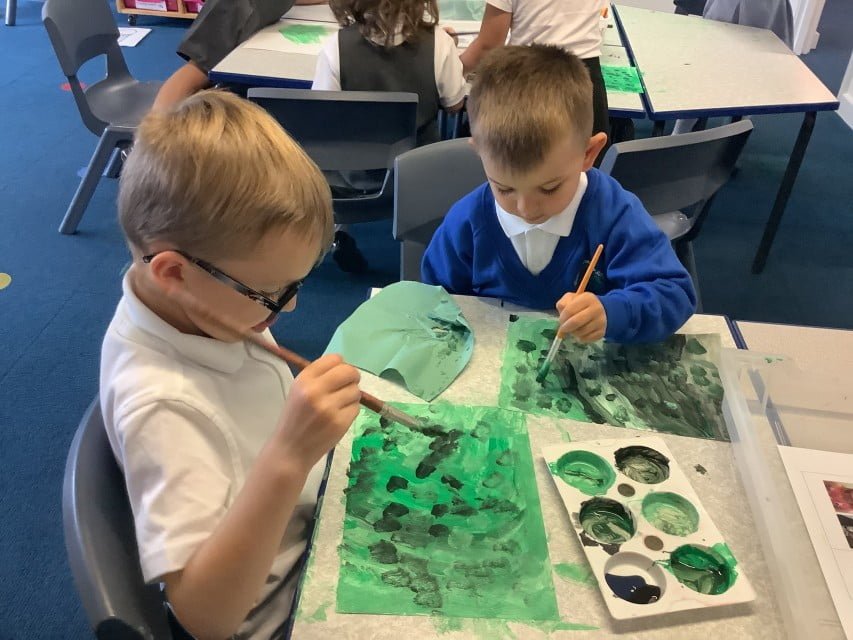 The children in year 1 have had a brilliant start to their second year in school. The children have been immersed in the book, ‘The Very Hungry Caterpillar’ and have been inspired to create artwork just like Eric Carle. The children were challenged by one of our school drivers, Enquiry man, to see what happened when they mixed different colours. After creating some fantastic colour wheels it was lovely to hear the children using the language of ‘primary’ and ‘secondary’ colours. The children also learnt about tones and tints. They explored adding different quantities of black and white paint to see what happened. After washing paper with the different shades of green, the children collaborated together to create a fantastic Hungry Caterpillar. Well done year 1!