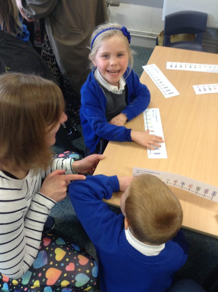 We have been very busy doing lots of maths this half term, and we invited our grown ups in to show them what we have been doing. We did some counting to 20, and can even do it backwards too. We then had lots of maths activities on each table, and explored them with our parents.