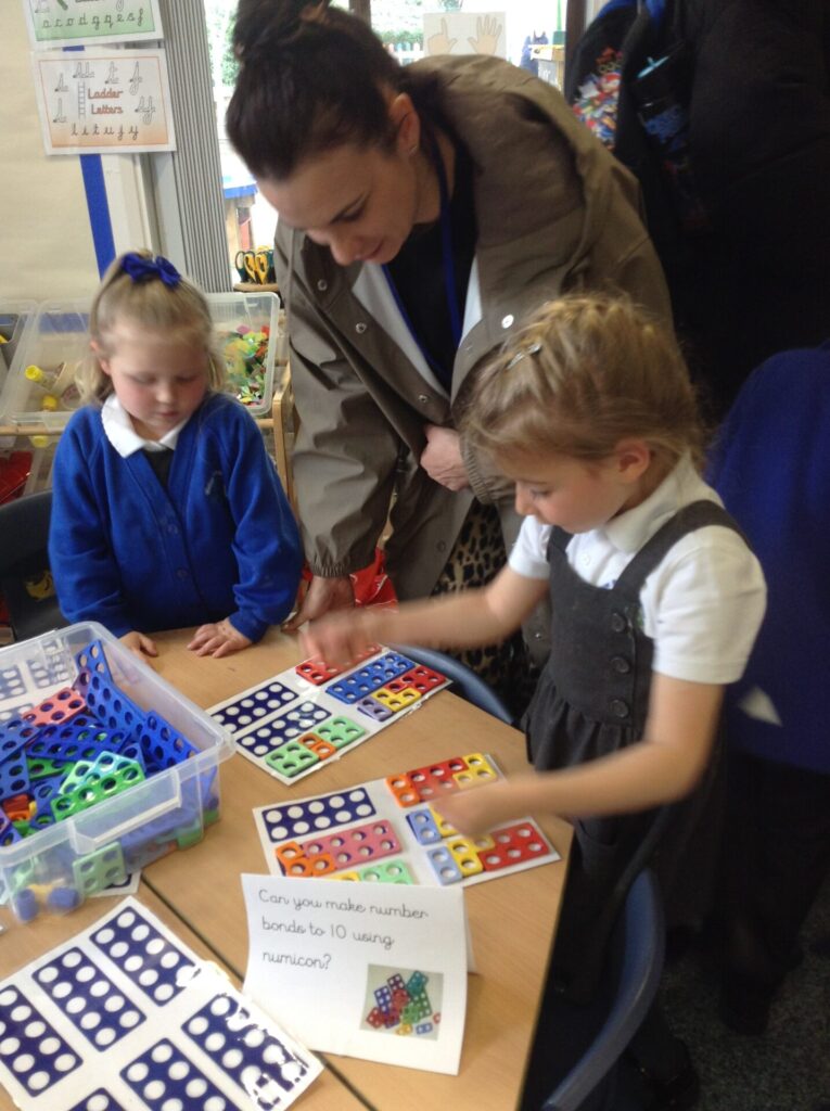 Then we also showed our number bonds to 10. We got the numicon to show which two numbers are pairs to make 10. All the children now have their own maths packs with all of these lovely resources in, we can’t wait to see what you get up to with them at home.