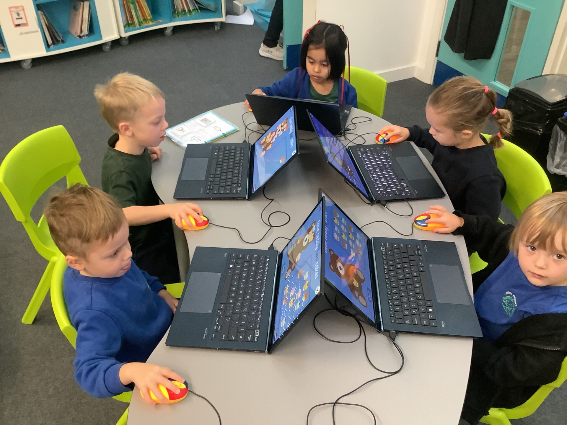 Children in Pear and Apple classes have been learning computing skills this half term. The main emphasis has been to learn how to accurately control a mouse. The children have played a number of games, starting with simple movement and clicking and moving on to ‘dragging and dropping. In today’s lesson, they had to feed teddy the correct number of cakes by dragging them onto him.