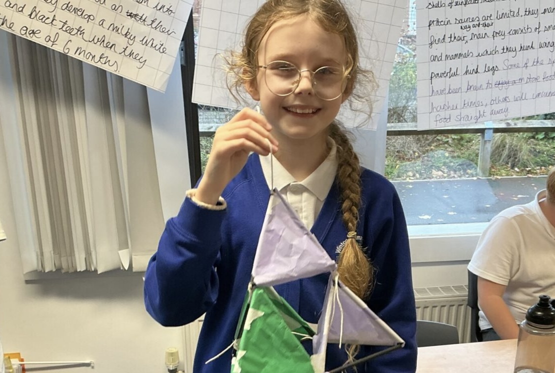 After working to become finger fluent in making tetrahedron cells, today, Year 6 worked hard to create tetrahedron structures from string and straws. They then added tissue paper to turn these structures into kites.