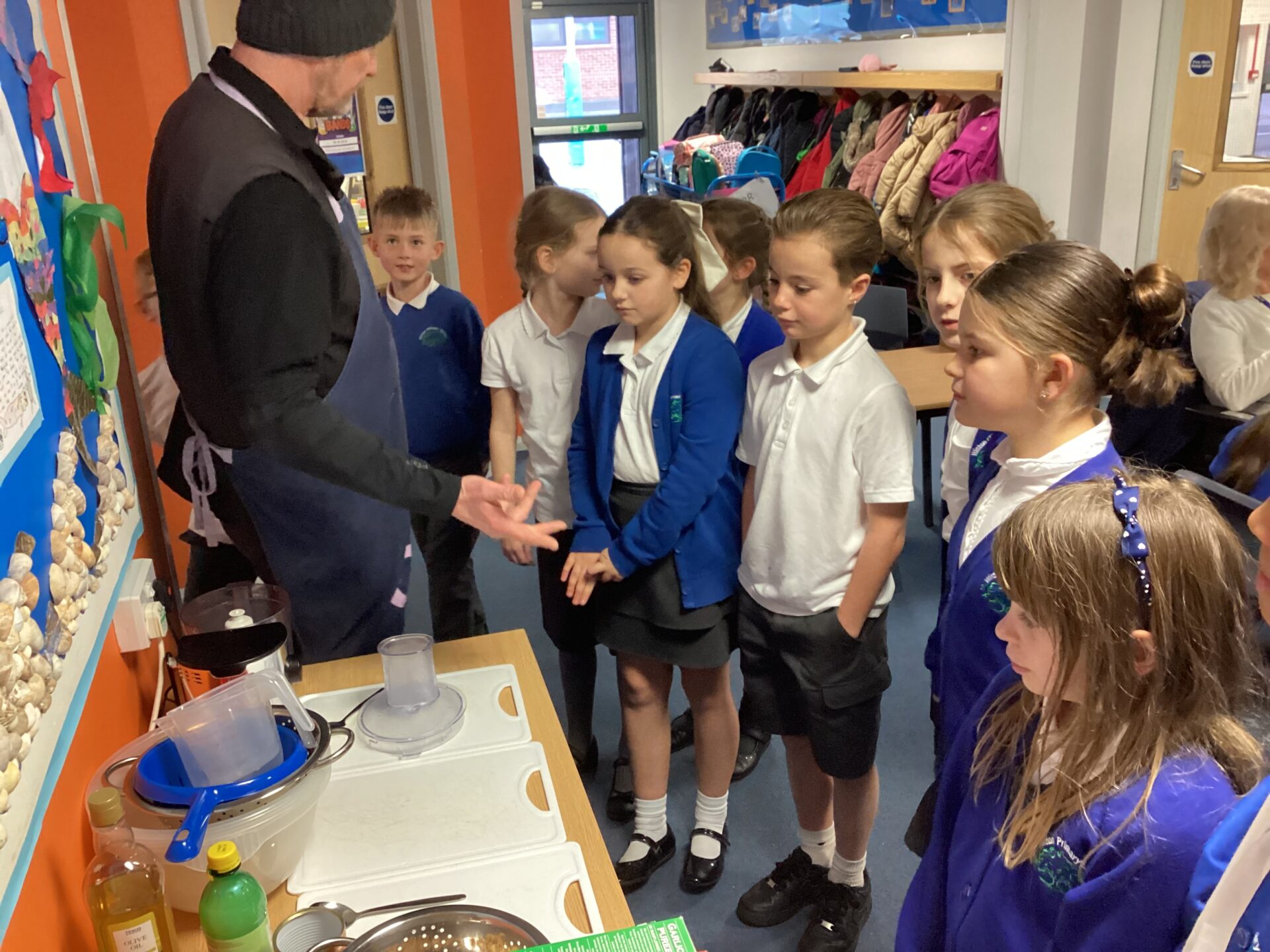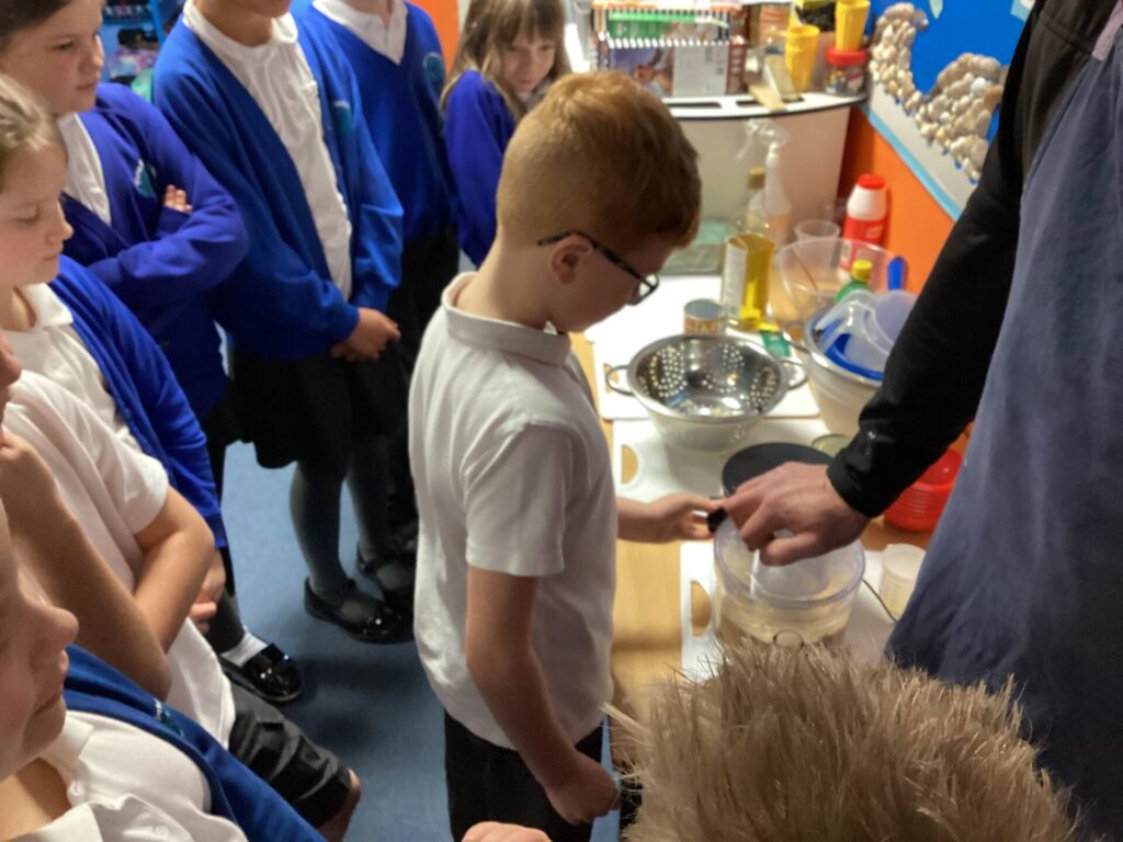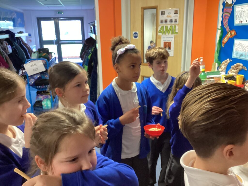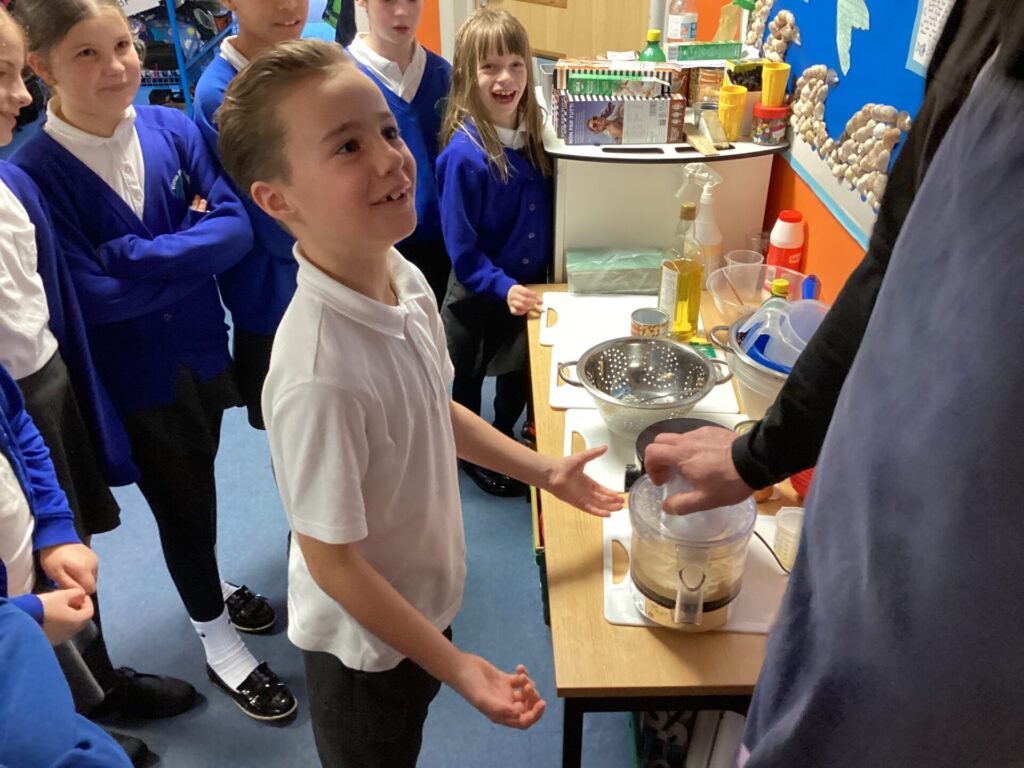 Year four have been learning about the process of dip making with Mr Keeley! They learnt a classic – hummus – making sure they understood the ingredients, process and even got to taste it! The next stage is to evaluate the dip and design their own!