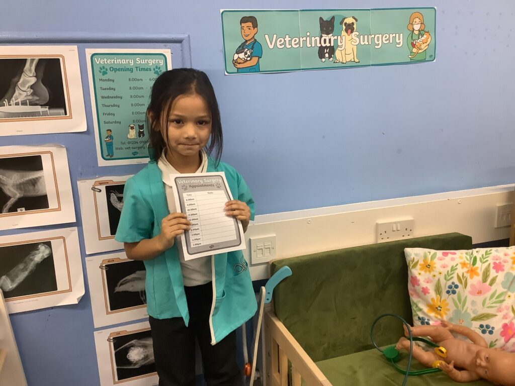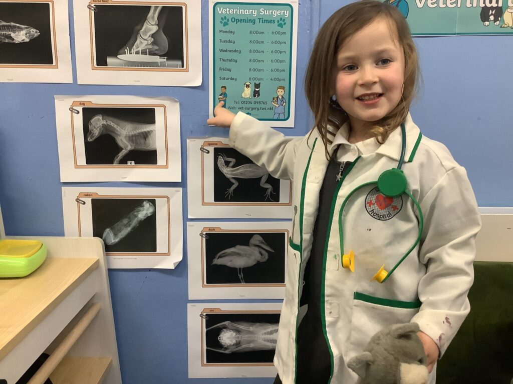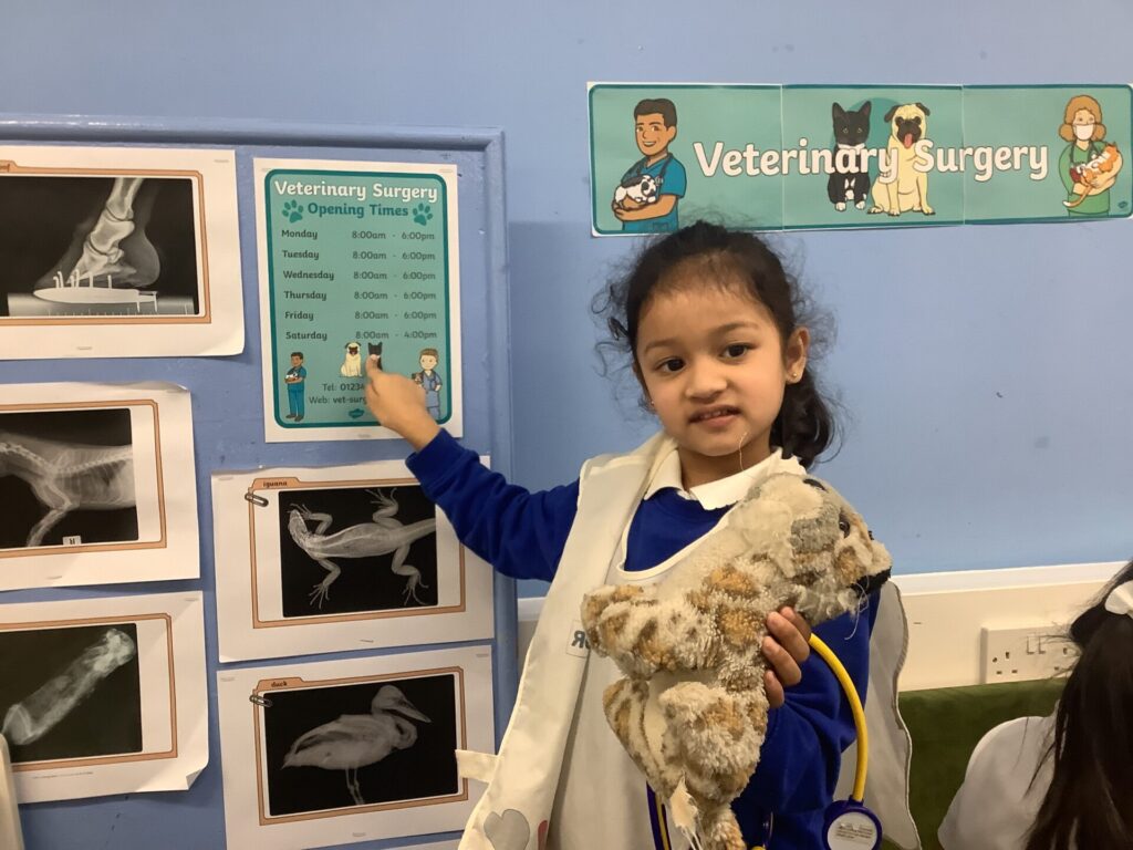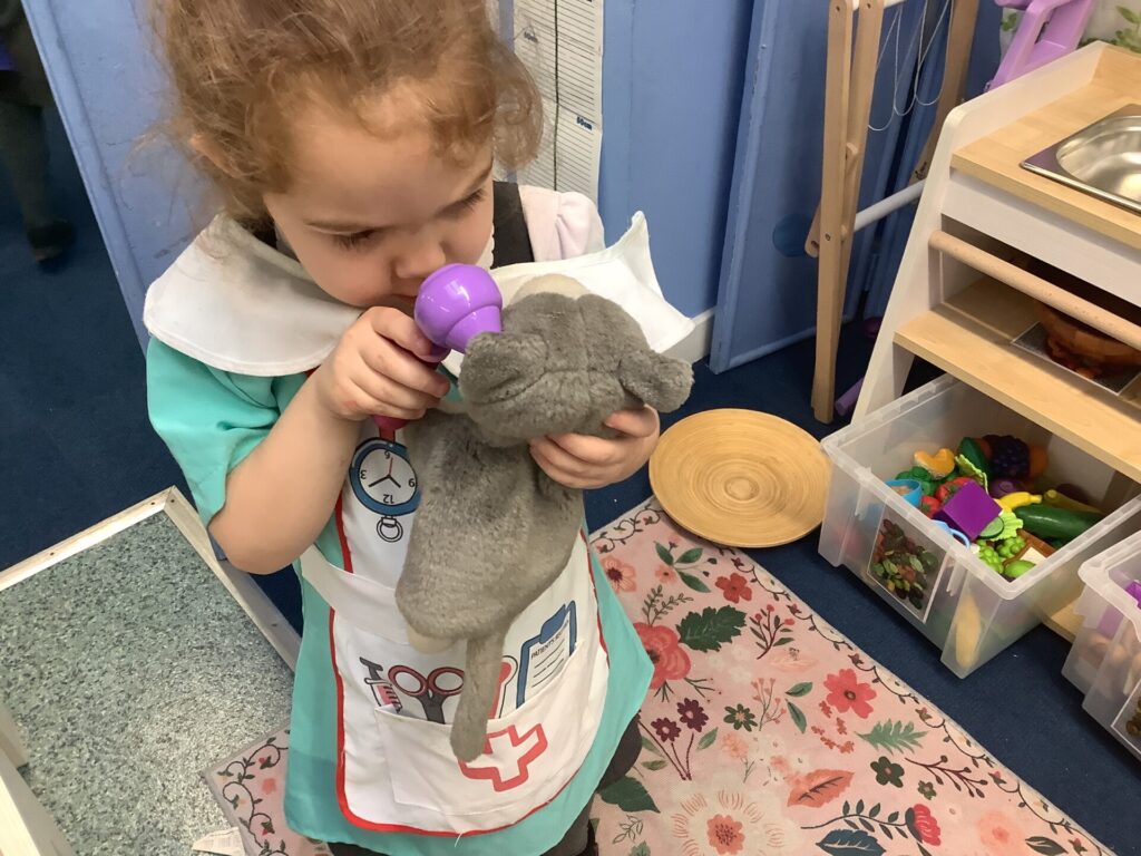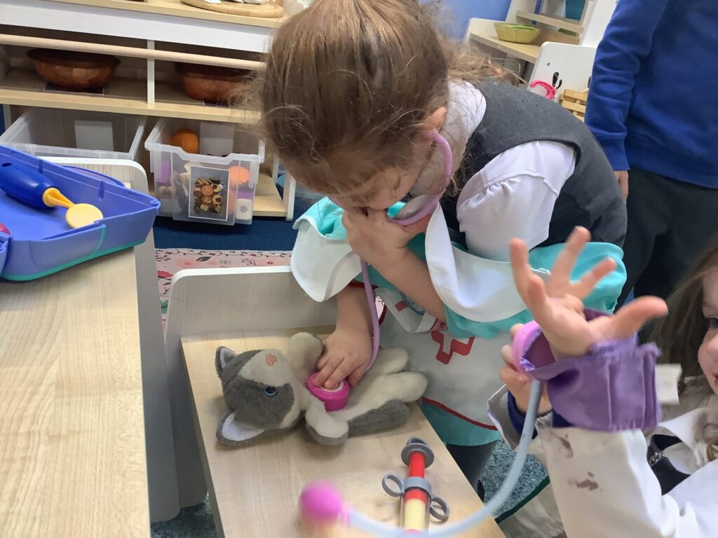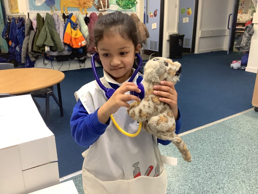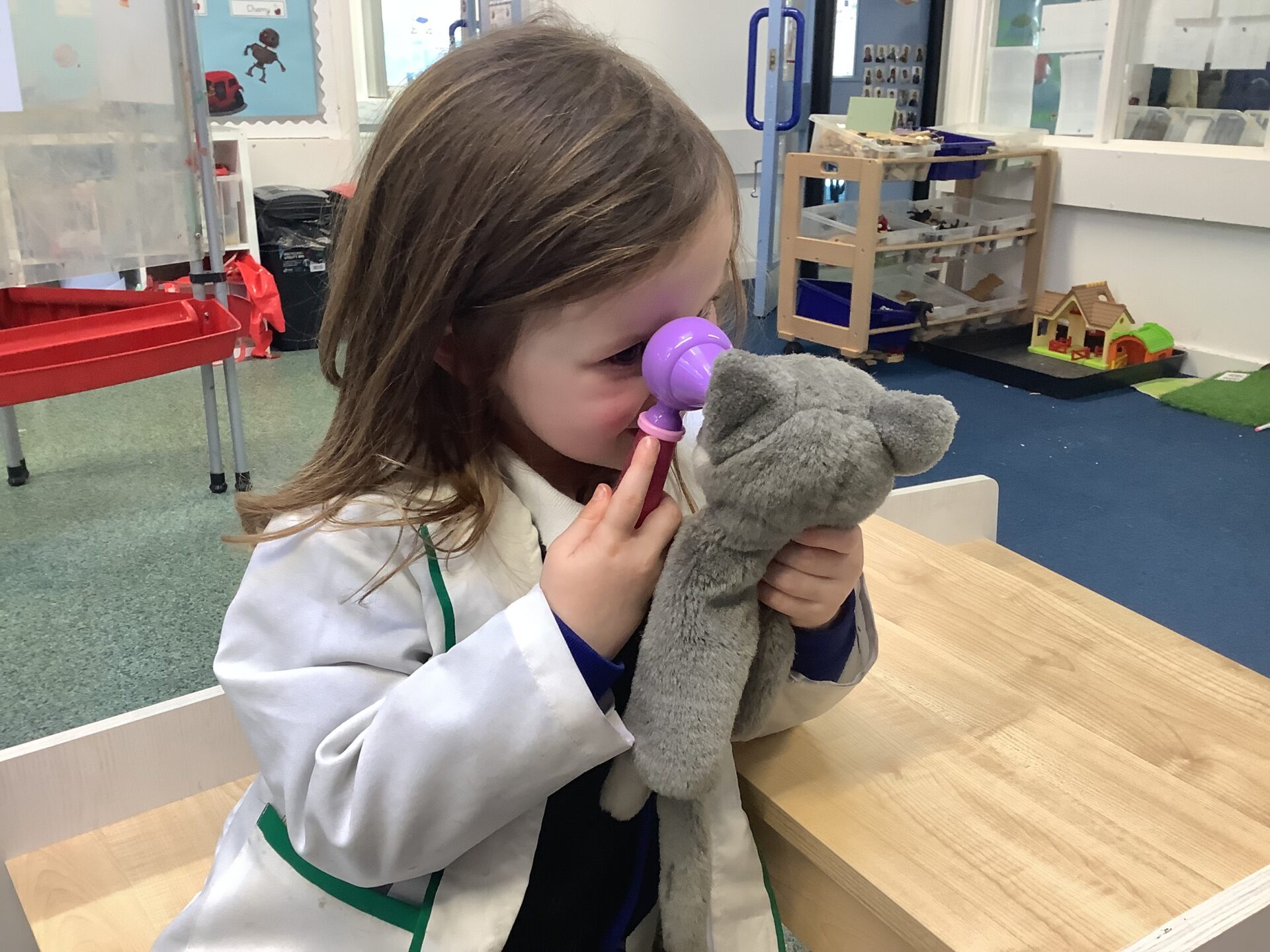 Indoor learning has a house role play area and this week it was enhanced with a vet. The children were able to play house and take their pets to the vet for check ups and to get medicine and X-rays.