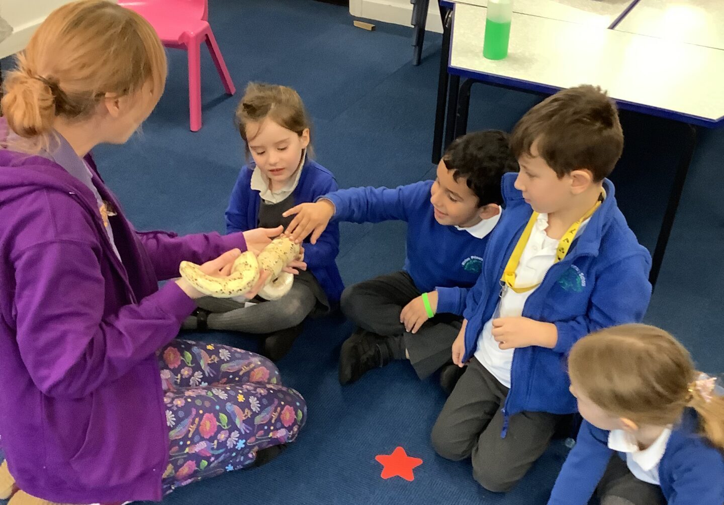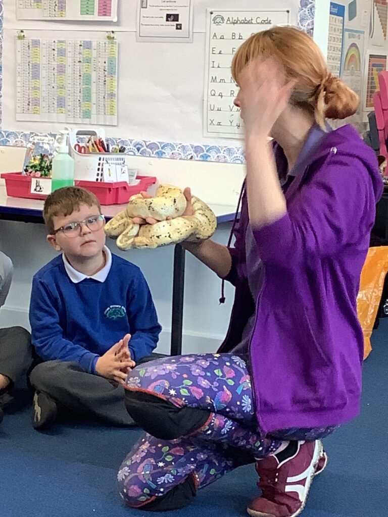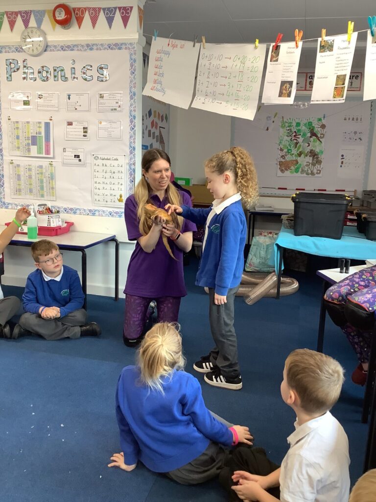 Year One ended the Spring Term by having a visit from the Creature Teachers. There was much excitement to be had as they brought six different animals for the children to see and touch including a cockroach, a snake, an owl and two ferrets!