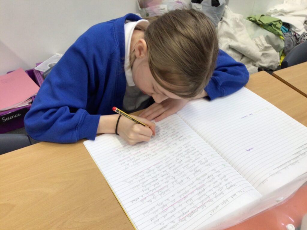 The children worked hard to describe their character’s thoughts, emotions and actions, using show not tell, in ways that allowed the reader to infer what was happening, rather than being told directly. This led to powerful descriptions, carefully chosen verbs and moments of real suspense.