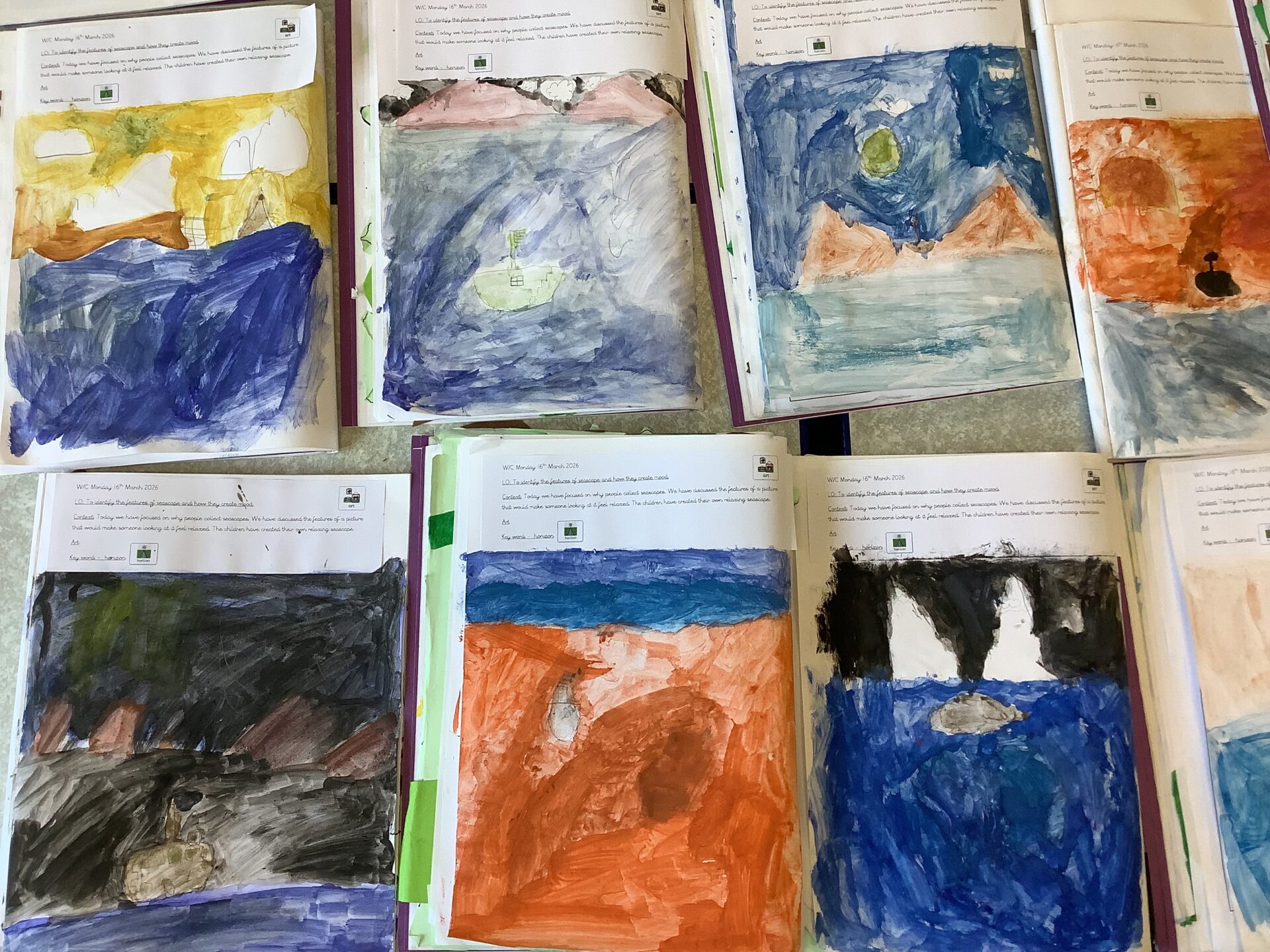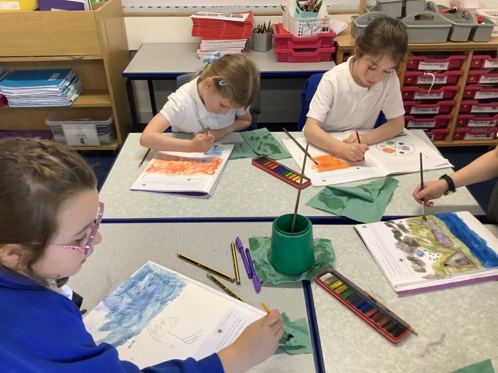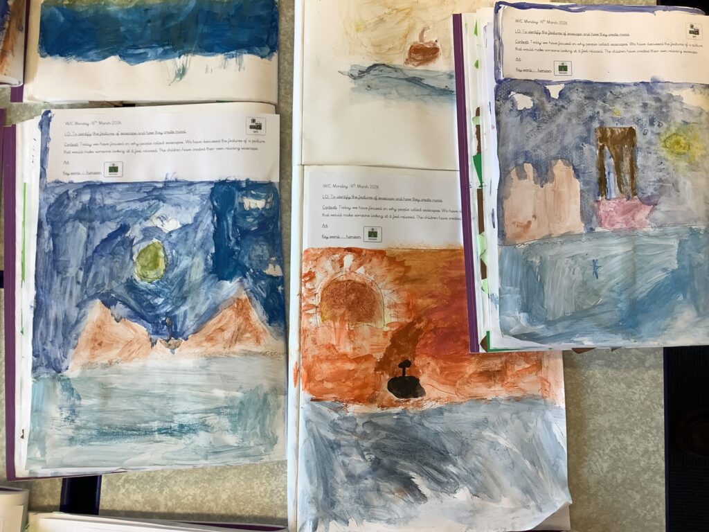 The children in Year 1 have been busy painting their own seascape. After learning about the artists Turner, Hokusai and Aivazovsky the children painted their own seascape in the style of one of the three artists. The children used their knowledge of the colour wheel to ensure they had complimentary colours in their paintings. Take a look at their wonderful art below.