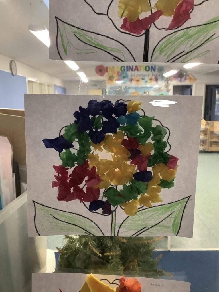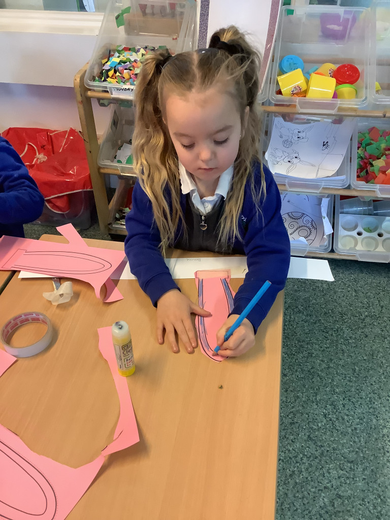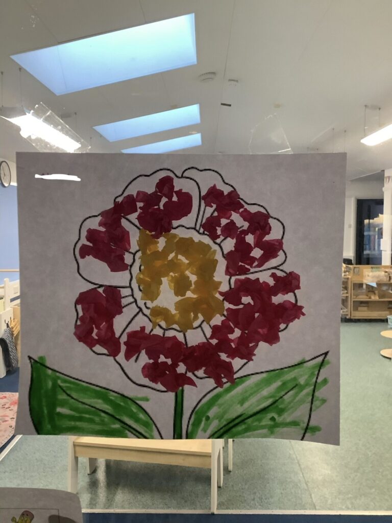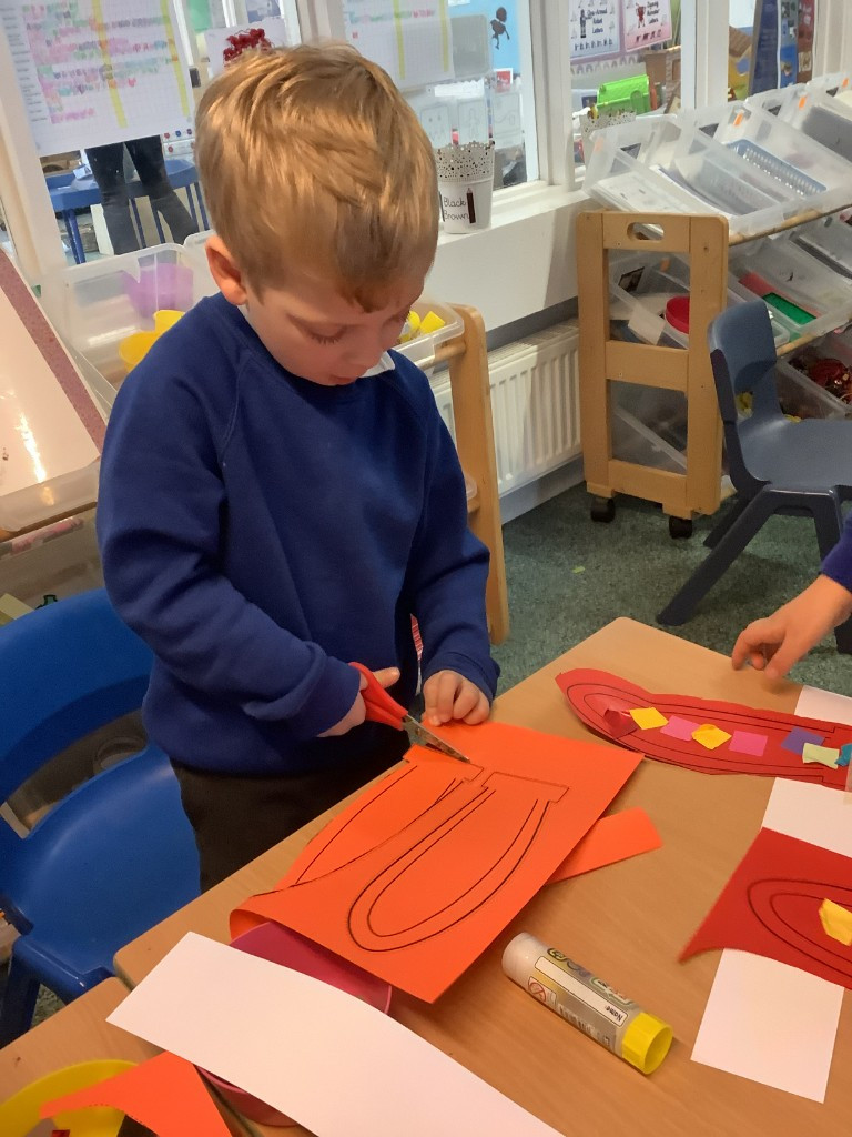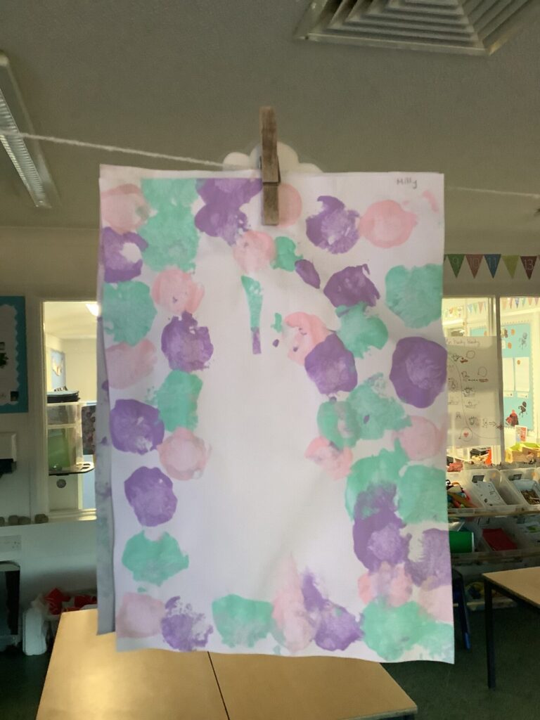 Each week the children in Reception have an independent art challenge to complete. This develops their colour mixing, joining, printing and collage skills.